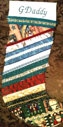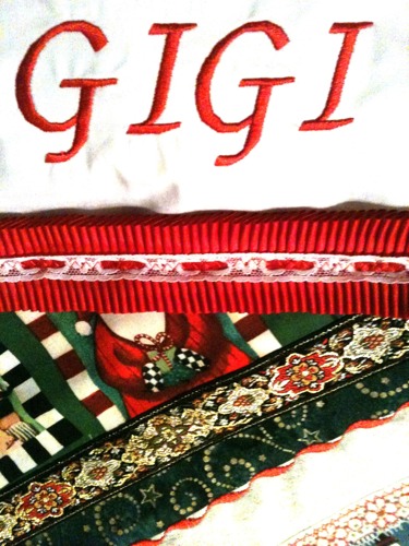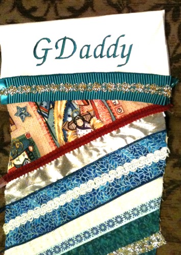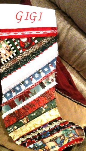 Mom has been sewing for 50 years! She began my lessons 35 years ago but my teaching and work with NASA did not allow for time for me to build on those lessons. Now, I have time, mom and her fancy sewing machine. I decided several days ago to start a project making Christmas stockings for our family. Today we made lots of progress, enough to share pictures with you. Here are the fronts of stockings for me and Dennis, Gigi and GDaddy.