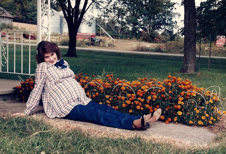 1985, October – Sue Darnell on the sidewalk of her home on MInter Road, Route 1, Symsonia, KY in western Marshall County about a week before the birth of her son Seth MIchael. She was still teaching and taught until the day of his birth that school year.
