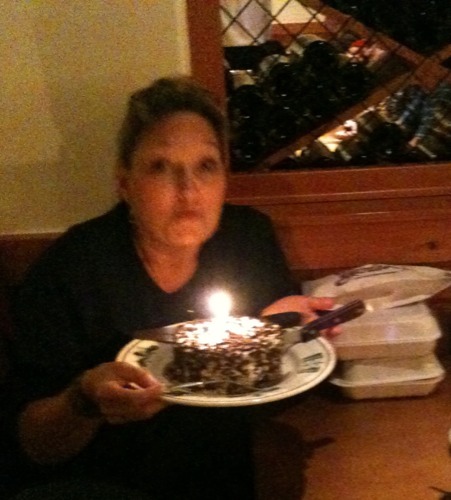 Having a February birthday usually means Winter, Snow and Ice but not this year!! Today it was in the 70s but overcast, nice for walking so I walked about 2 miles.Had a cranberry schepps vodka drink, football appetizers, Happy Day emails from brother Lynn & sister Cindy, phone call with dad, Skype with Matt & my grandkids earlier today, long call with Seth Michael, call with Dennis, Alma, & Kaylee, tons of Facebook Happy Birthdays!!!, text from Nathan and Emily; Olive Garden and cake last night with Mom, Tom, & Harry & Connie Snyder from Maryland.