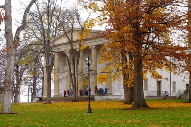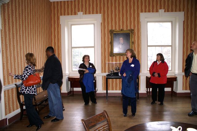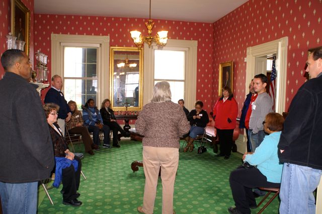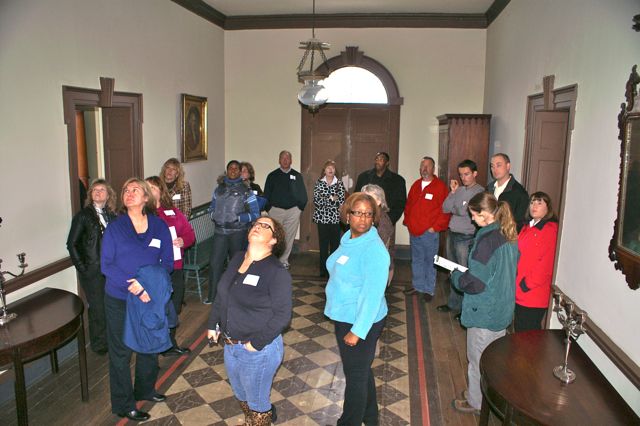 5. The main floor of the KENTUCKY HISTORY CENTER has the state of Kentucky laid within the floor tiles and provided a perfect place for a group picture. Here we caught the FRANKFORT TROLLY and rode it over to the ORLANDO BROWN HOUSE and LIBERTY HALL HISTORIC PROPERTIES both located on Wilkinson Street.