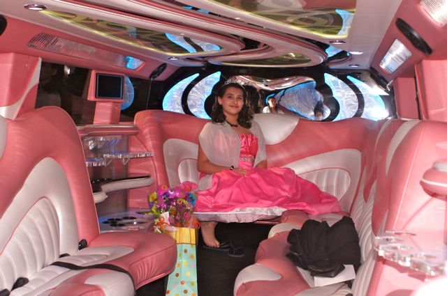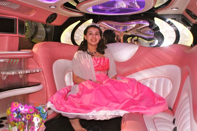 Our Qunice Anos 15 year old Queen of the Quinceañera is complete with her Pink Hummer wheels, what an interior! Laughing with her sisters and friends inside the Pink Hummer was a special treat for Mary’s Quinceañera.