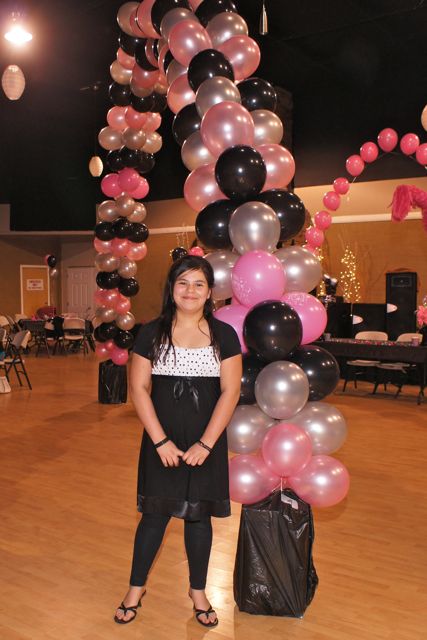 Mary’s Mary’s Quinceañera Gown, her decor all bring together her Pretty in Pink Quince Anos, Quinceañera. The Essence of Mary and her Quinceañera was true youthful beauty of a 15 year old young lady budding into her womanhood. The Quinceañera balloon decorations were completed by her mom and friends and made the party atmosphere something to behold!
