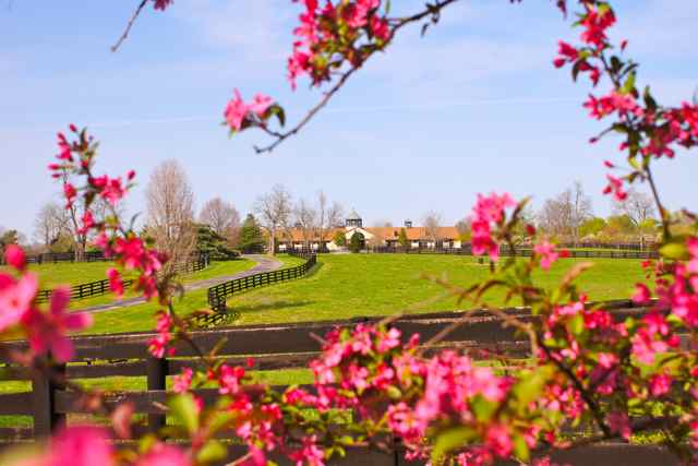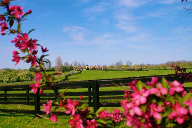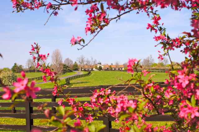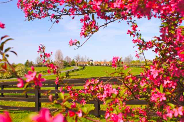 Frame the horse farm with the blossoms and beautiful pictures result.