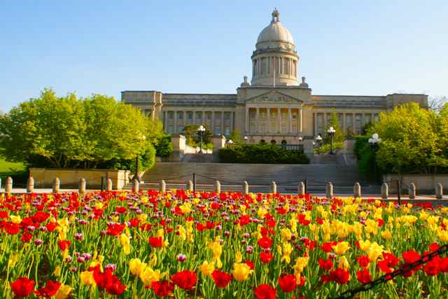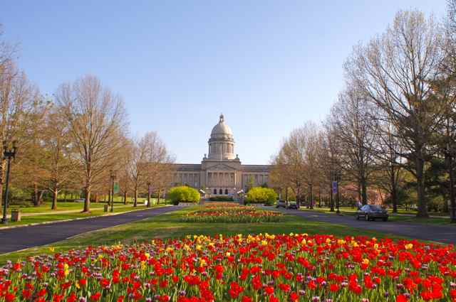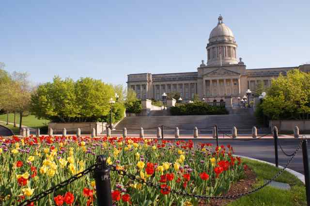 Frankfort hosts several events for the Kentucky Derby and the Capitol is beautiful in bloom during this spring.