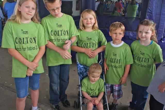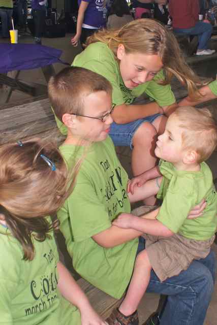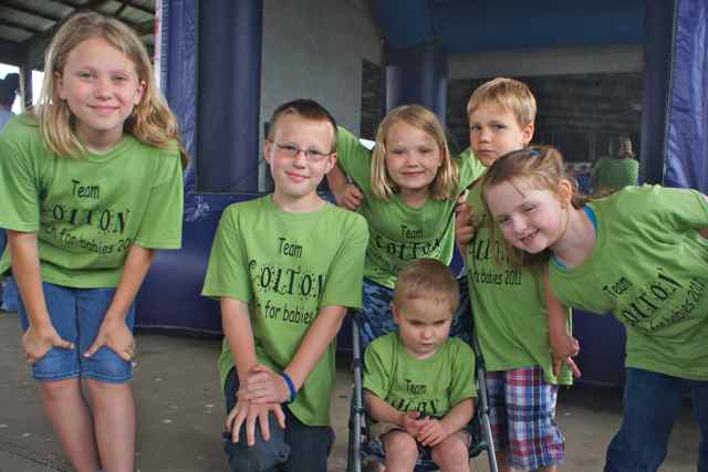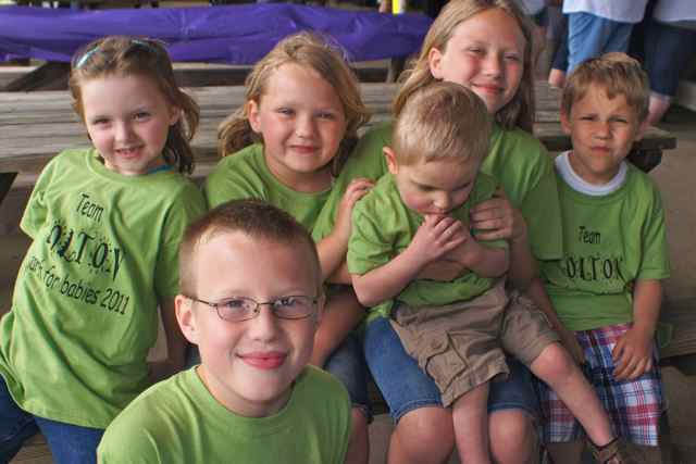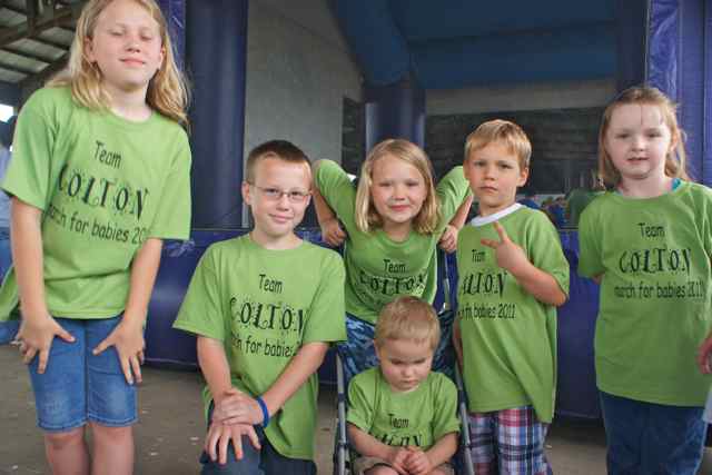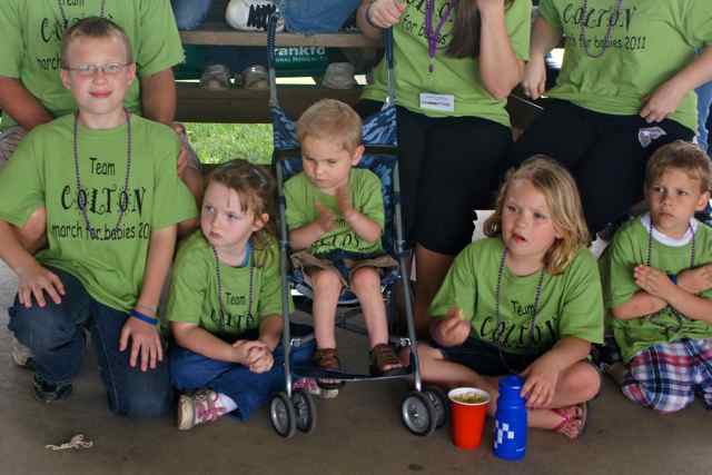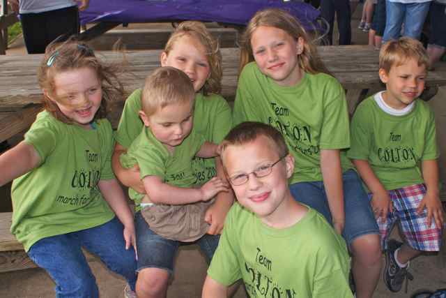 Colton’s cousins, our grandchildren sit across the front of TEAM COLTON:
