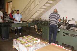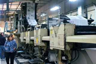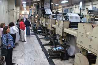 The press room is huge! The printing press itself is massive, noisy, effective, efficient, productive, and amazing to those of us who had never seen one in action before!