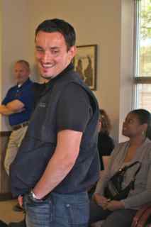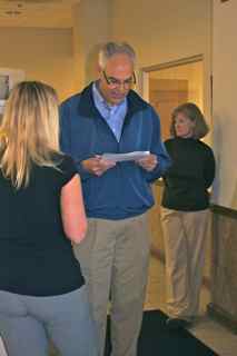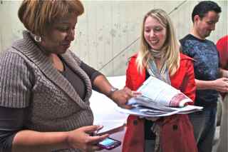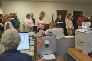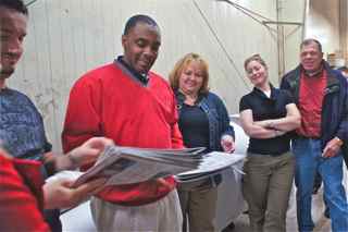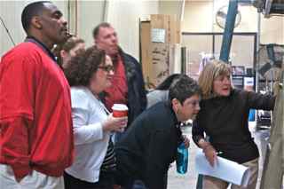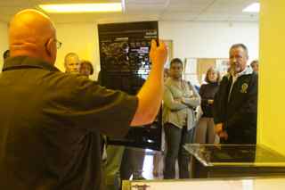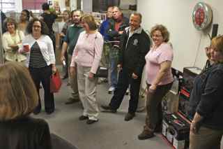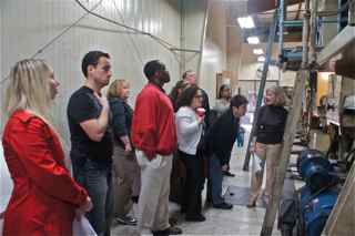 Upon arrival to The State Journal’s facilities, Leadership Frankfort Class Members were welcomed immediately by two receptionists who stayed busy on their phones. We saw newspapers stacked for sale for fifty cents each, a bench decorated with a collage of Frankfort clippings from The State Journal, John Higginbotham our Media Challenge Day chairperson chatting about our day’s schedule details, and Ann Dix Maenza, The State Journal Publisher, waiting to be our official tour guide. Members of the class of 2010-2011 were able to spend a few minutes relaxing, laughing and sharing for just a few moments between the media presentations and demonstrations we enjoyed throughout our busy day.