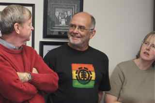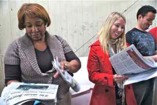 HOT OFF THE PRESS newspapers bring smiles to the faces of Frankfort’s Leadership participants Lamar, Penny and Melanie.