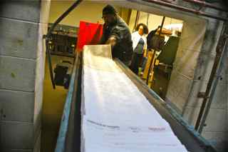 Along the way, papers are checked for print quality and adjustments can be made as needed.