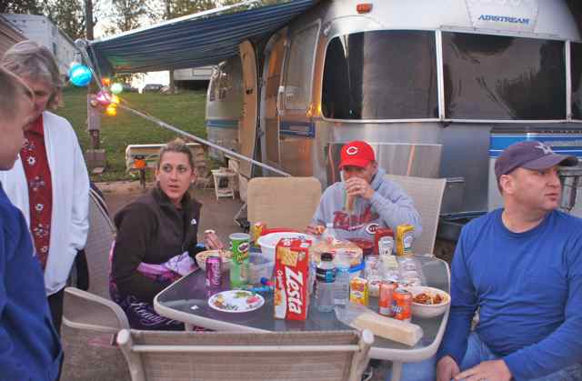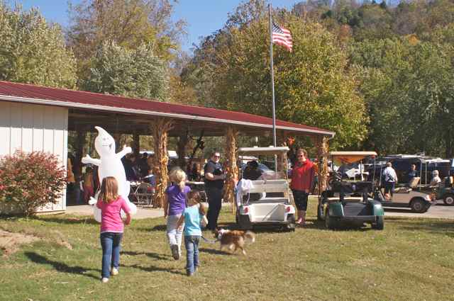 After the family gathering for Seth’s birthday, we loaded up the girls and headed out to the Airstream and Kentucky River Campground for a big Halloween Weekend there. Arriving there about 9:30, the girls headed straight for the playground under the night lights. GDaddy provided the scary monsters chasing them around and wearing them completely out for a good night’s sleep.