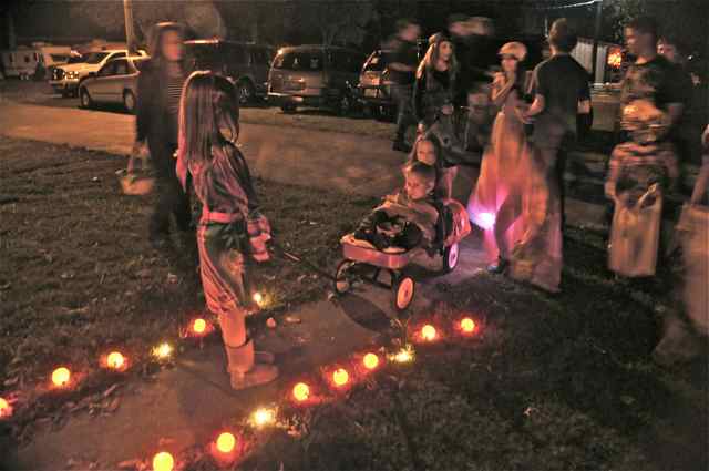 Trick or Treating for ALL! Just a glimpse of the Trick or Treating with our little crew. Colton and Jaden got the royal seats in the wagon and everyone else walked on their own and kept me attempting to make sure I had not lost anyone! They filled their pumpkins just circling the lower level! With that we headed back to the camper to get bags for use on the upper level and off we went again!!