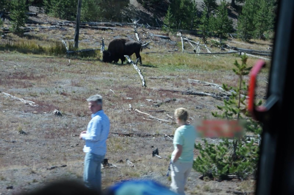 During our trip, September of 2012, we noticed animal jams for bison, elk and one in particular, where various predators were feeding on a bison carcass over our three-day stay.