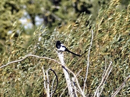 Black-billed Magpie is a bird in the crow family that inhabits the western half of North America. It is notable for its domed nests, and for being one of only four North American songbirds whose tail makes up half or more of the total body length.