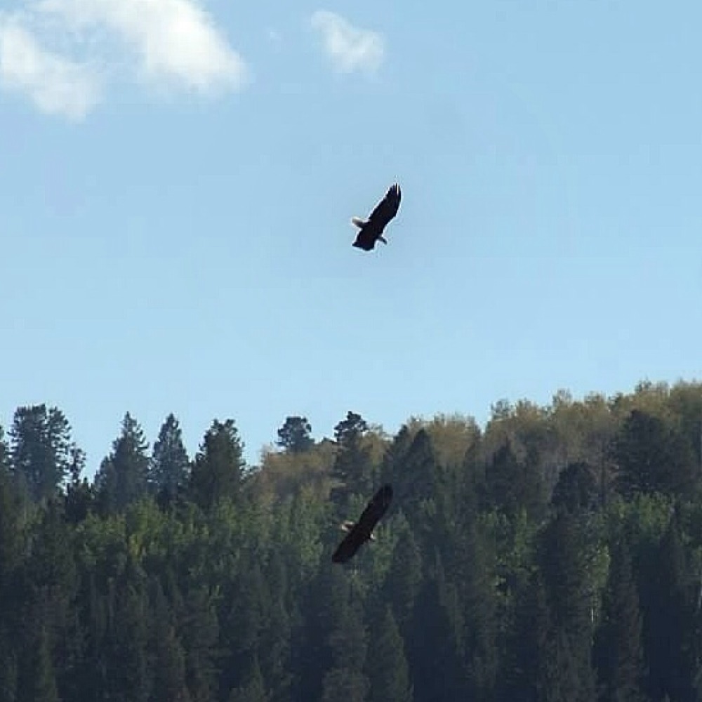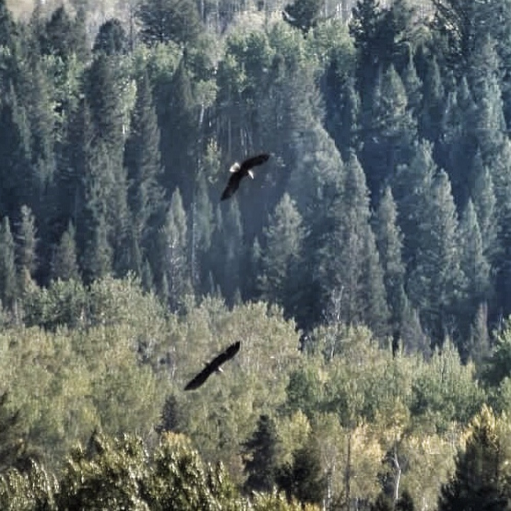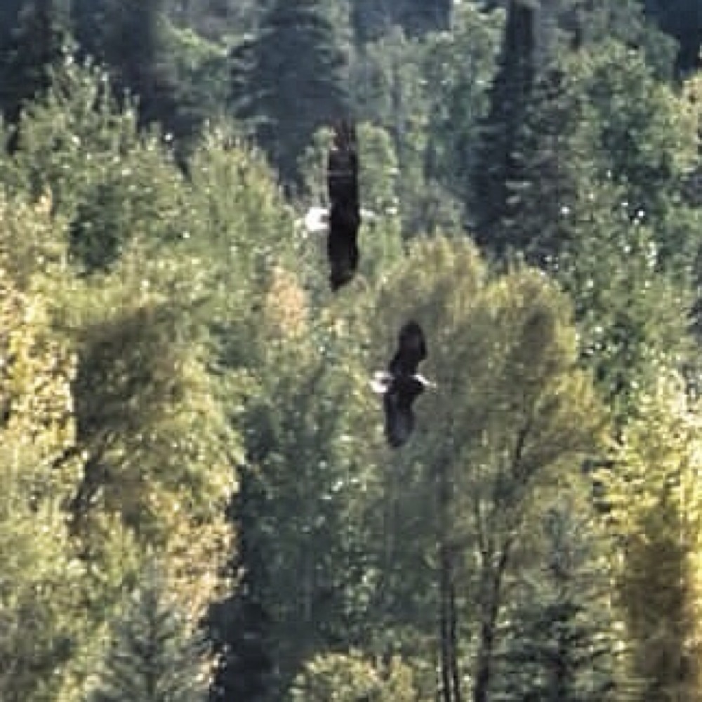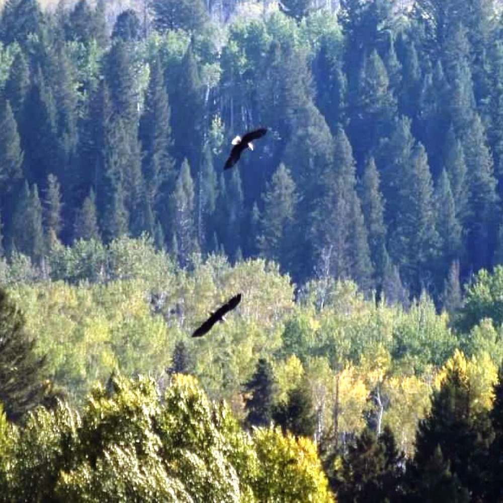 Rafting down the Snake River, at the base of the Grand Teton Mountains, we saw several birds! With my camera equipment far away birds came in closer, but my 300mm lens was not enough to bring these playing American Bald Eagles as close as I would like. STILL, WHO Gets to SEE TWO American Bald Eagles playing in-flight in the sky? We Did! Those of us on the Uncommon Journey Best of the West spotted and watched these majestic birds at play! Here they are captured in images thus creating memories of a lifetime whether zoomed in close up or not. What fun for the girl they called Ansel Adams!