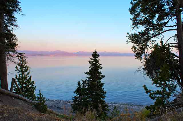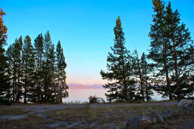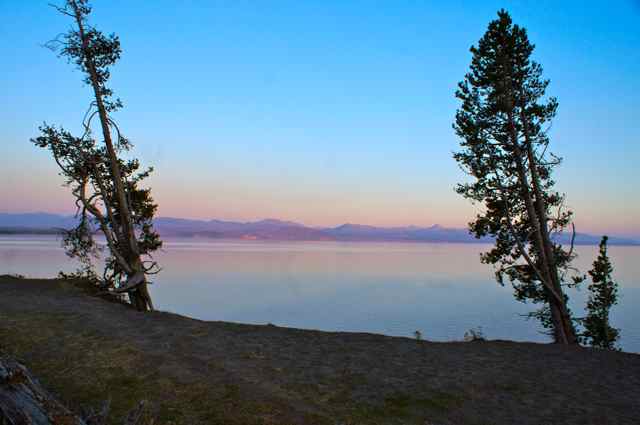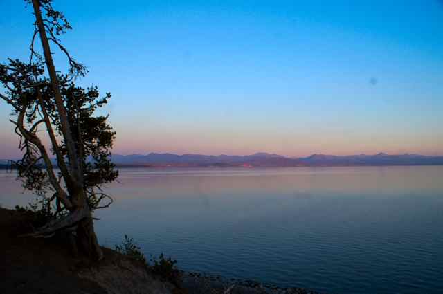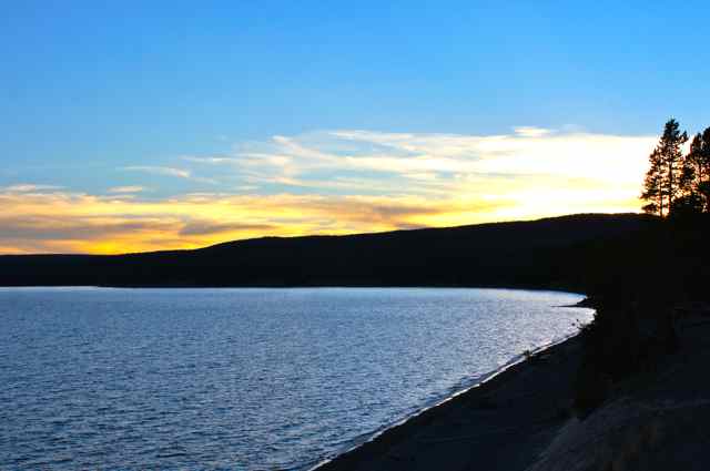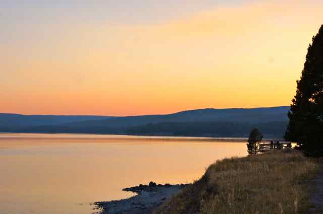 Catching a sunset, a reflection, wildlife, or a glimpse of a waterfall, these are some of the hopes of a photographer on vacation. Here you see sunset shots I made in one evening’s walk around Lake Yellowstone in Yellowstone National Park. Mom and I had eaten prime rib at the Yellowstone Cafeteria and though mom did not want to walk, I wanted to ‘try’ to catch some sunset shots. I was happy I had taken the long route back to our cabin because the shots of the lake and the sunset made it worthwhile. Almost all of these pictures were made on the same night in Yellowstone National Park of sunset over Lake Yellowstone.
