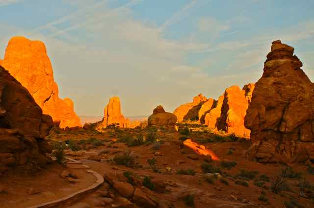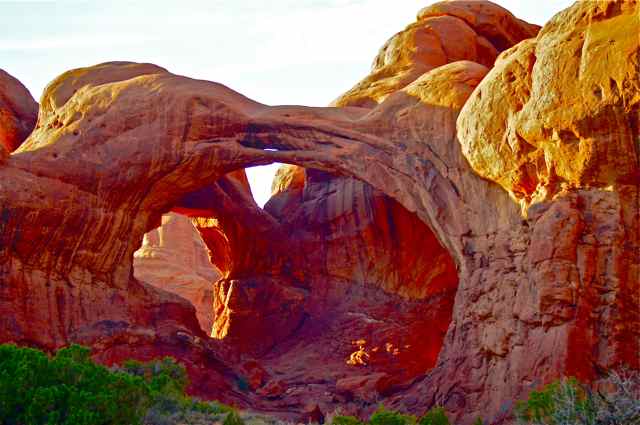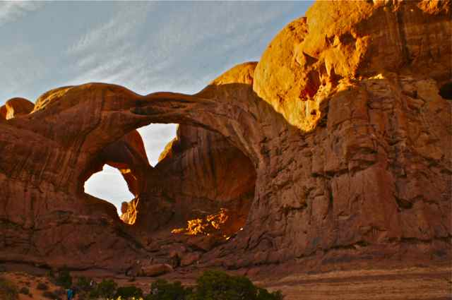 On this Uncommon Journey, we visited FIVE national parks. We visited Glacier, Yellowstone, Grand Teton, Arches and Canyonlands National Parks. The last opportunity for sunset pictures on our trip, mom and I made for ourselves and was at Arches National Park. Mom and I diverted from the bigger tour group to get this opportunity. In one day while we were in the Moab, Utah area we took a Hot Air Balloon trip AND a special Arches at Sunset Tour. BOTH of these options were WELL-WORTH the extra expense and very special additions to our trip. I would recommend to Uncommon Journeys at move the day planning around to allow tour participants the chance to see and experience Arches at Sunset. The reds were redder than ever and the drama of this place stretched in the shadows of sunset. Enjoy this glimpse of the one of the most dramatic places on earth.